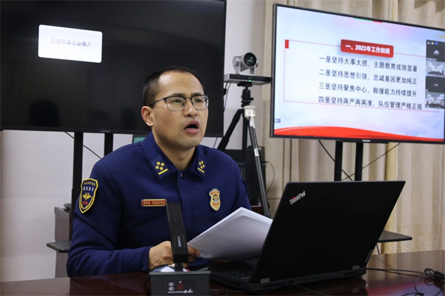 征程万里风正劲,重任千钧再出发,大队将坚决贯彻落实总队党委扩大会议精神,在新的一年里,我们要以更强的责任担当、更实的工作作风,高标准、高质量完成各项工作任务,以时不我待、只争朝夕的紧迫感和责任感,全面提升应急救援能力,为新年度工作开好局、起好步。