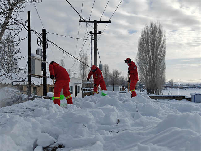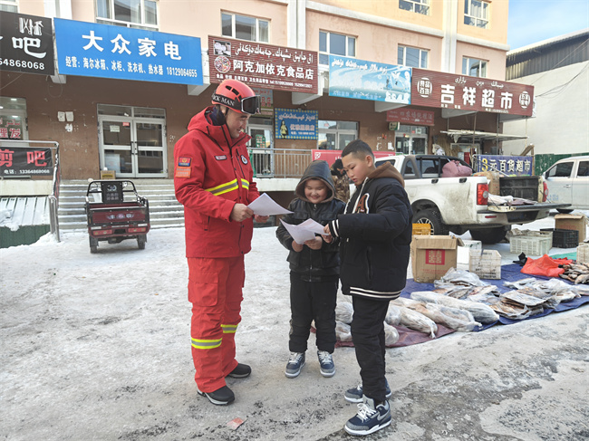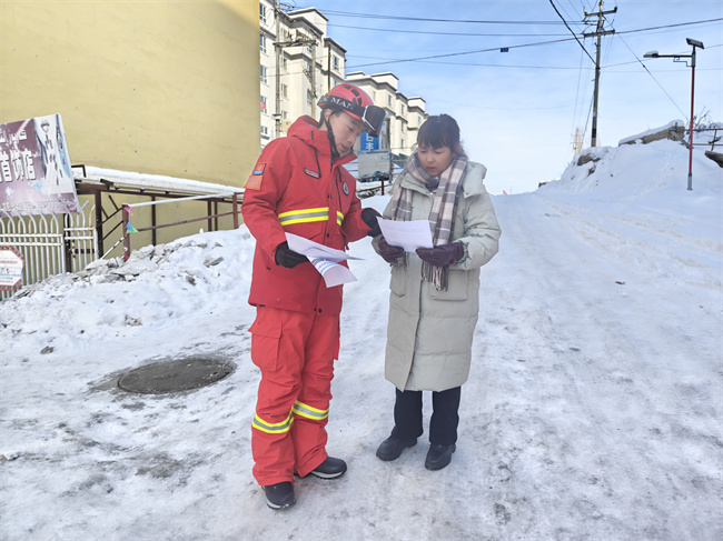 此次活动大队共出动25人5台车辆,主要对附近乡镇进行实地踏查,了解掌握群众受灾情况,有无因降雪造成房屋倒塌、牲畜棚圈受损、道路不通、断水断电、物资压埋等情况。对影响群众通行的被掩埋道路进行清理疏通,积雪损坏的房屋、牲畜棚圈等进行安全评估,存在高危不能继续使用的,联系对接当地政府进行转移安置,轻微受损的帮助进行除雪和修缮。此外,消防救援人员采取走村入户宣讲和发放宣传单形式宣传冰雪灾害常识、冬季出行安全常识、室内防一氧化碳中毒安全常识等,提升群众安全意识和防灾减灾能力。