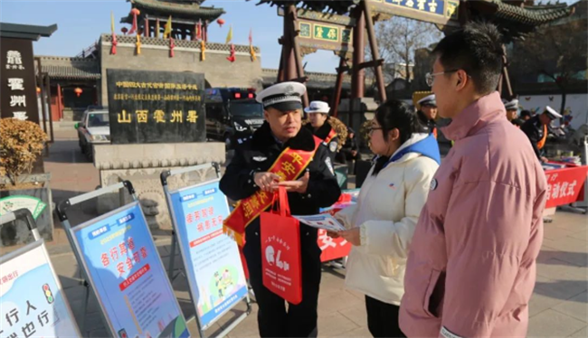 在霍州署广场,民警通过悬挂春运主题宣传标语、张贴海报、摆放版面,广泛开展交通安全法律法规咨询、安全文明行车、乘车等安全常识宣传教育活动,向过往群众、驾乘人员发放宣传材料,面对面宣讲春运交通安全知识,提示大家遵守交通法律法规,自觉抵制交通违法行为,预防和减少交通事故的发生,积极营造了浓厚的春运道路交通宣传氛围,保障了人民群众的平安出行。