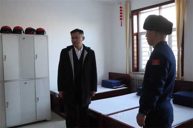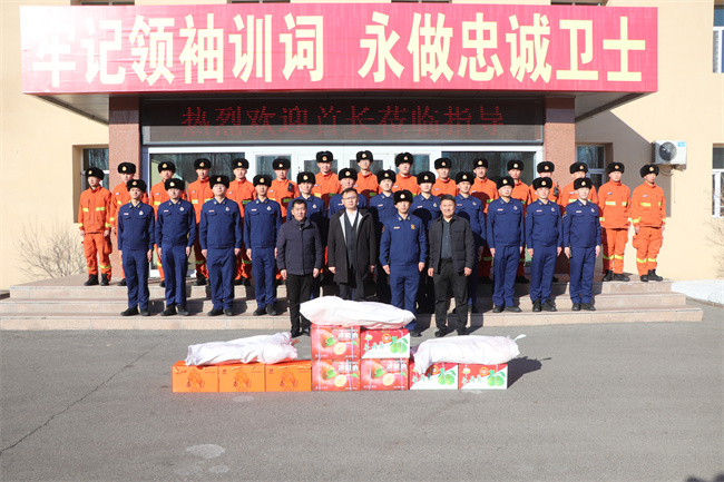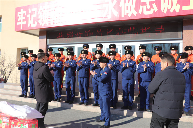 王德来书记代表富蕴县委县政府对大队全体消防救援人员表示深切慰问并赠送了慰问品,而后实地查看了大队建设情况,对大队的建设给予了高度评价,对近年来大队全体消防救援人员在遂行各项应急救援任务中做出的贡献表示充分肯定。