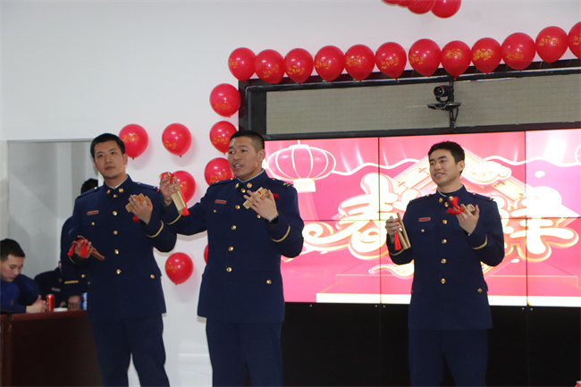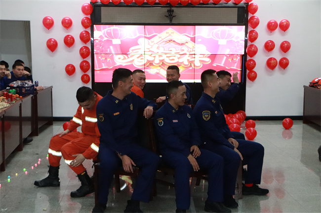 本网讯:(陈飞同)瑞兔辞旧去,龙腾新年来。随着新春佳节的到来,在保证执勤任务的同时,阿勒泰地区森林消防支队阿勒泰大队营区里掌声雷动、欢歌笑语、其乐融融,一场属于“火焰蓝”的春节晚会正在隆重举行,为全体队员献上一场精彩的文化盛宴,营造了喜庆祥和的节日氛围,营区里充满了新春的喜悦和浓浓暖意。