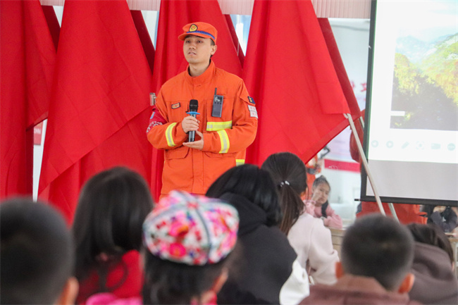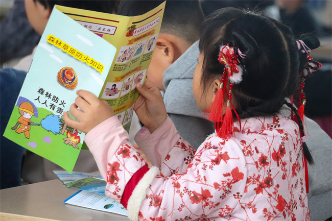 随后在蝶湖社区由大队和社区工作人员邀请小朋友开展“新年第一课·森林防火进社区”活动。消防员通过发放宣传图册、互动交流,讲解灭火装备等方式,向小朋友普及森林对人类的重要意义、森林火灾的危害,以及造成火灾的主要原因和火灾自救方法。教育小朋友们不把火种带进山林、不在林缘及林内放烟花爆竹等,鼓励小朋友们当好森林防火的宣传员,提醒家人不在林区抽烟、野炊等。