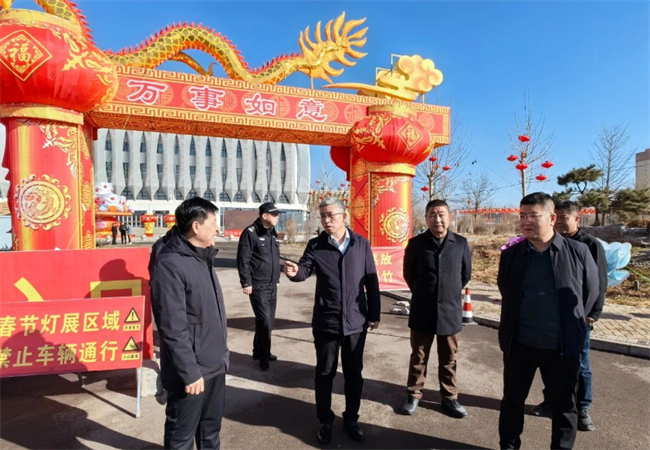 在全民健身中心“龙年灯展区”,张强强同志对灯展区域的电源设置安装、电线穿管敷设、消防器材配备、警示标志张贴等实地检查,详细了解灯展期间客流量、安保措施等情况,提醒职能部门要切实提高安全意识,严格落实安全生产主体责任,加强日常管理看护,确保灯展活动安全有序进行。他要求辖区派出所加强应急值守,有效排查化解各类安全风险。同时要强化宣传引导,劝导广大市民文明有序观灯,禁止燃放烟花爆竹,保障灯展期间人民群众生命财产安全。