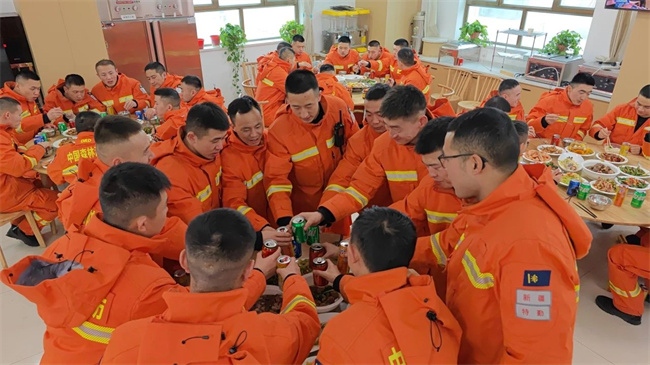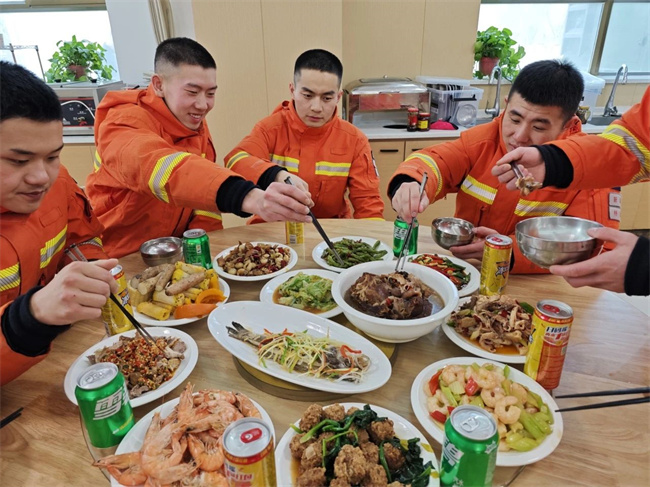 大队在前期广泛征求指战员意见和建议,根据不同的口味和喜好,专门制定春节期间食谱,为指战员准备丰盛的饭菜,确保节日期间的后勤保障工作。同时,在除夕之夜大家共进年夜饭。