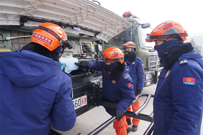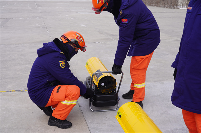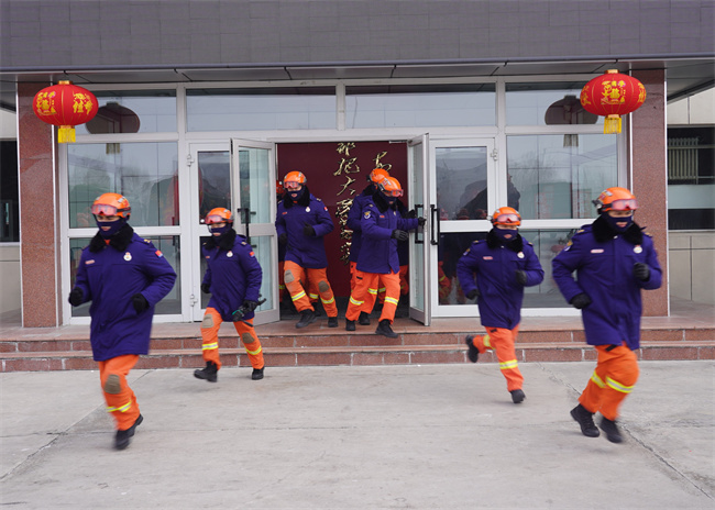 该大队立足实战需求,坚持“高起点谋划,高标准落实”,周密部署,明确责任分工、细化装备编成,使指挥员对整个预案的程序内容、个人携带装备以及抢险救援中可能遇到的多种突发情况都有详细地认知和了解,切实打牢消防救援人员冰雪灾害救援的“基本功”。严格按照“下达命令、紧急集合、快速机动、检验物资、总结讲评”的步骤程序实施,大队指挥员在值班室通过对讲机下达命令后,全体消防救援人员迅速进行战备等级转换,此次冰雪灾害救援拉动演练正式拉开序幕。