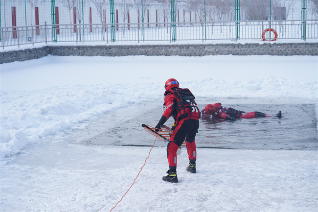 乌苏市森林消防大队严密组织冰雪灾害救援拉动演练