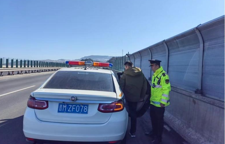 ▲晋城支队二大队执法人员在辖区阳翼高速开展巡查时,发现一名行人不顾过往车辆行走在应急车道上。执法人员当即开启警报器停车对其进行询问,但此人始终一言不发,情绪较为激动。为保证安全,执法人员用执法车辆带其离开高速公路再作后续了解。(丁亮)