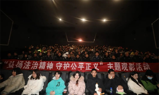 本网讯:(丁卫平)为弘扬社会正气,进一步增强公安干警法治思维和为民情怀,彰显司法公平正义,让政法工作更注重法理情融合。2月21日、22日,霍州市公安局组织民辅警及家属集中观看新年贺岁法治理念类影片《第二十条》活动,用影片浸润心灵,让司法公正理念更加入脑入心。