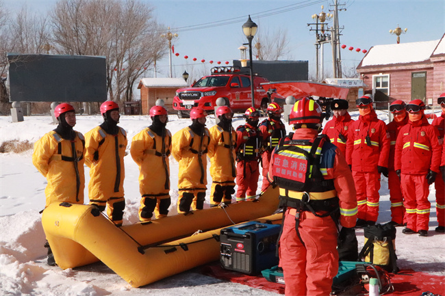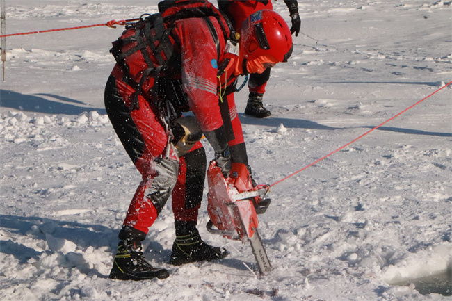 “冰面救援突发性强、时限性高、危险性大,冰下温度极低,被困者很容易因低温导致身体僵硬,甚至失去意识。这对我们来说难度不小的任务,每一秒都是黄金时间,所以这更要求大家在平时救援训练中下精、下实功夫。”阿勒泰地区消防救援支队周继成科长向大家分享道。