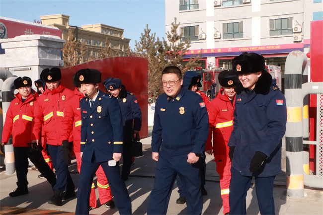 随后,阿勒泰地区森林消防支队全体队员来到福海县消防救援大队营区进行参观。到达营区后,福海县消防救援大队全体队员对阿勒泰地区森林消防支队一行的到来表示热烈欢迎。在大队干部的带领下先后参观了战备车辆、装备器材室,以及大队荣誉室、指战员宿舍等场所。在参观器材装备的过程中,大队长详细介绍了各类救援装备和车辆的性能与作用。