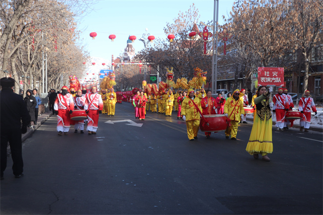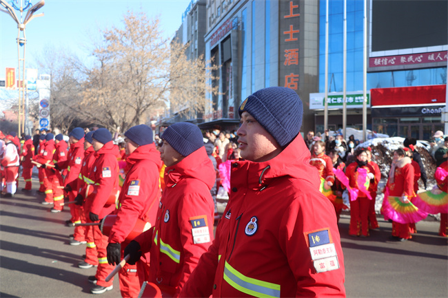 本网讯:(曾雨晨)锣鼓敲起来,社火耍起来。扭秧歌、舞龙狮……作为传统文化的民间艺术瑰宝,民俗表演让元宵佳节充满了喜庆的氛围。2月24日,富蕴县举行2024年元宵节社火展演活动,富蕴县森林消防大队精心组织、积极参与,以一抹“火焰蓝”绘就社火展演活动“最靓色”。