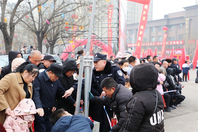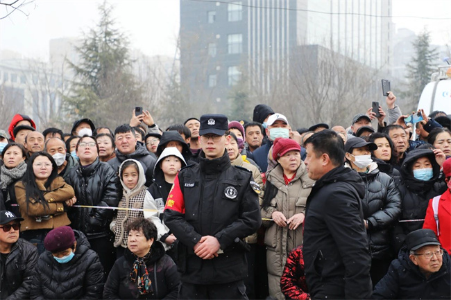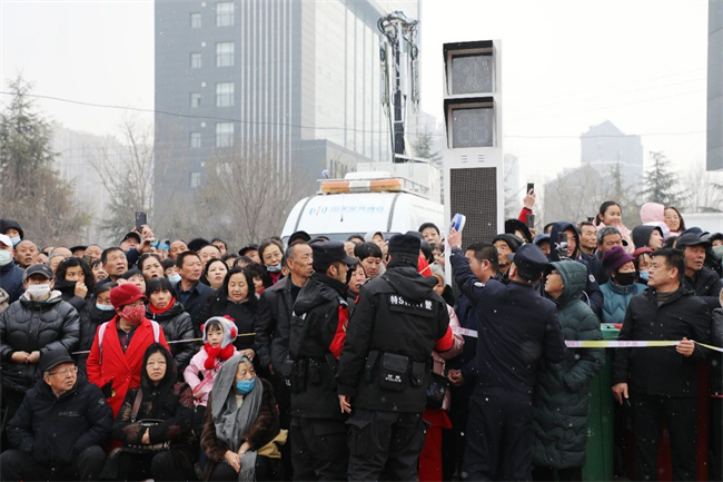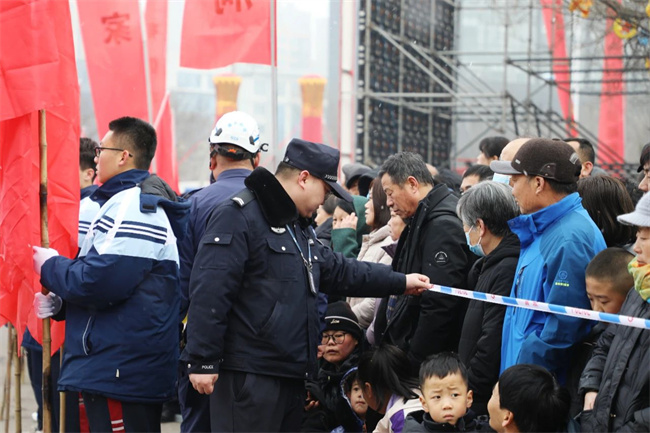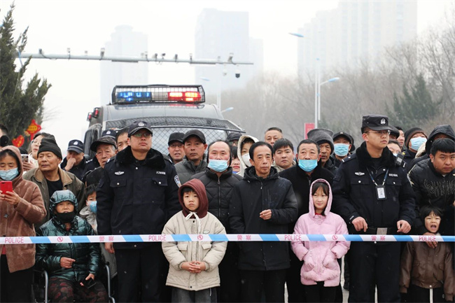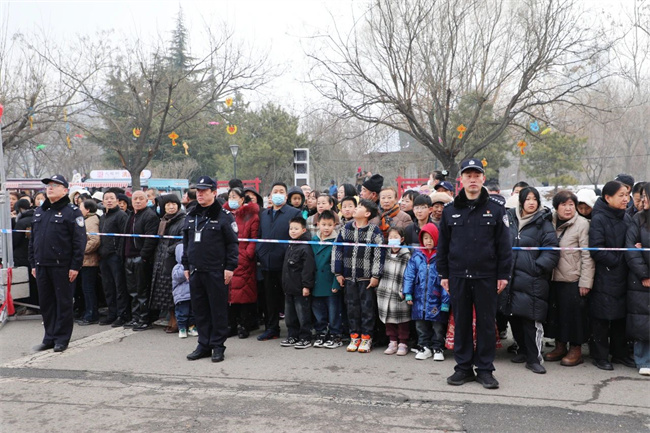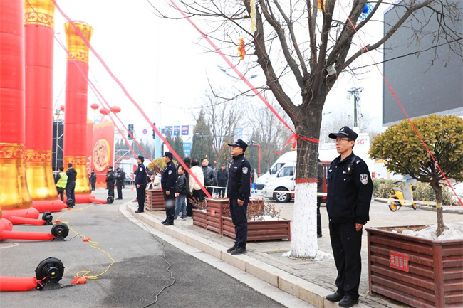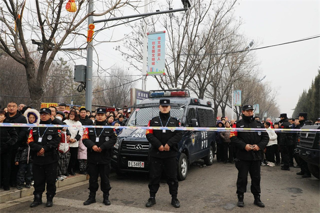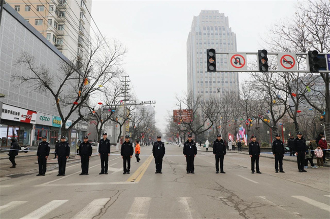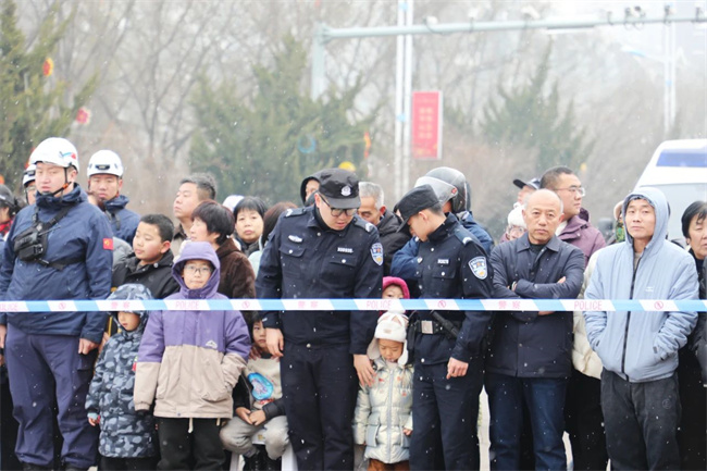 元宵文艺展演活动执勤期间,参战民辅警不畏严寒,以饱满的精神状态坚守岗位。
