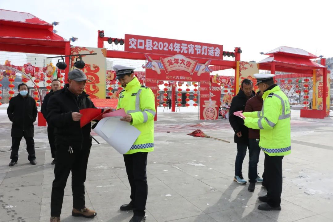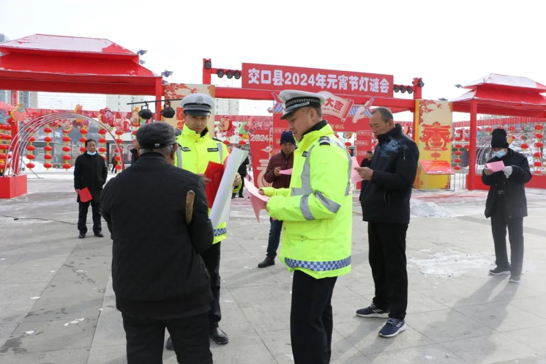 交口交警大队元宵节期间提前组织宣传警力,利用广场文艺活动、群众观灯、猜谜的有利时机,集中开展各类主题的道路交通安全宣传活动,努力营造安全、文明、和谐的道路交通环境。