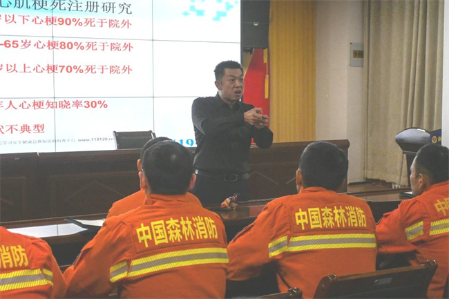 授课老师细心讲解在工作和日常生活中容易危及生命健康的几种疾病和常备的家庭用药以及日常注意的事项,遇到突发事件如何采取相应的紧急救助措施等,并与指战员进行互动交流,加深大家学习的积极性。