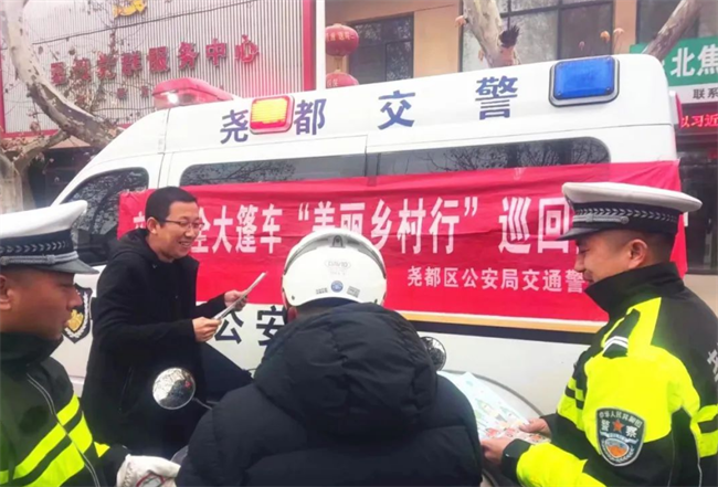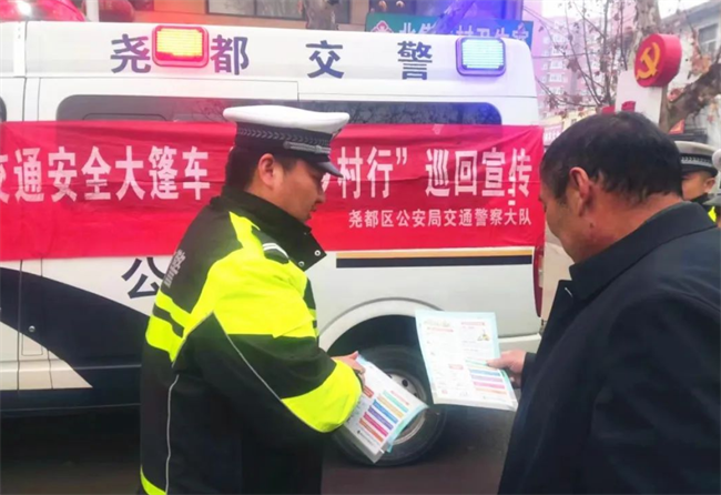 活动中,民警通过悬挂横幅、发放宣传单、面对面讲解等方式,针对春季安全出行特点,向过往群众讲解交通安全法律法规知识、农村交通安全出行注意事项以及乘车出行注意事项,并结合辖区近期发生的典型事故案例,以案释法宣传乘坐农用三轮车、电动车不戴安全头盔、驾乘汽车不系安全带等交通违法行为带来的危害性,呼吁过往群众自觉抵制交通陋习,维护道路交通秩序,遵规守法,文明出行。
