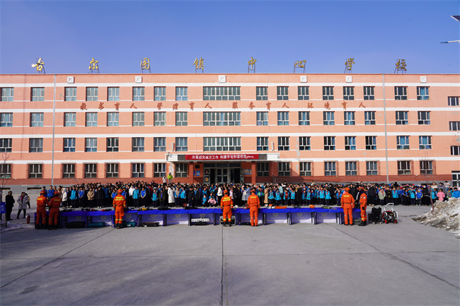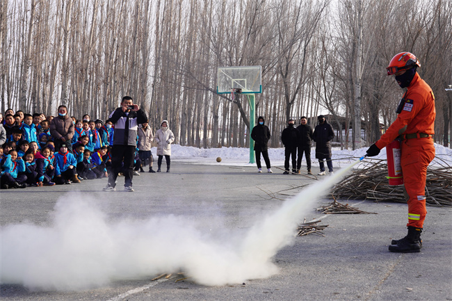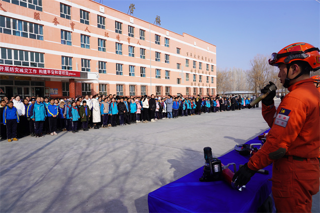 本网讯:(马强)“小朋友们好 ,我是新疆森林消防总队乌苏大队的消防员,有谁知道地震来临时我们应该怎么做?”“钻进课桌底下”……2月29日上午,在乌苏市古尔图镇中心学校的操场上,乌苏市森林消防大队的“蓝朋友们”正在开展防灾减灾宣传活动,旨在增强广大师生安全意识,提升应对风险隐患基本能力。