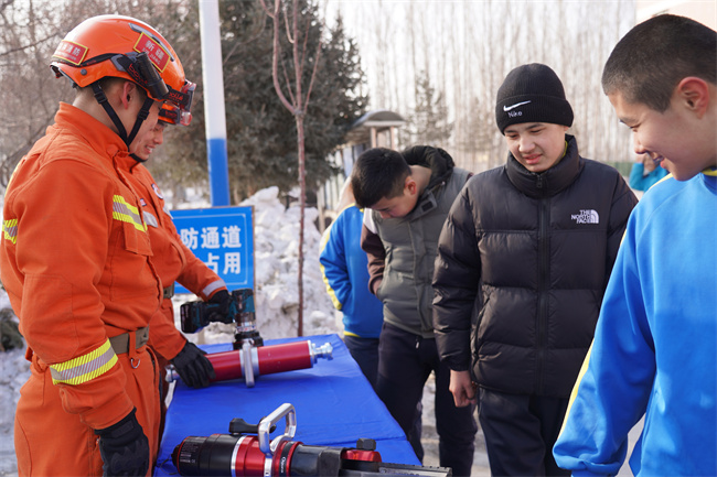 操场上,消防员们用通俗易懂的语言系统,面对面讲解了地震灾害危险性、地震逃生注意事项及灭火器使用等要点,普及了地震基本自救常识和初起火灾自救方法。救援装备展示区,“蓝朋友”详细介绍了各种救援装备的名称和使用方法,实地教授师生如何正确使用救援装备,师生们争相体验各种装备,围着“蓝朋友”们问个不停,不懂不会的问题现场提问,“蓝朋友”们耐心细致地一一解答,一张张欢快愉悦的笑脸给活动画上了圆满句号。