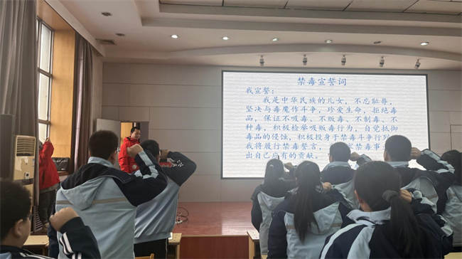 活动中,禁毒民警给学生们宣讲了有关禁毒法律法规和毒品基础知识,禁毒社工借助毒品仿真模型展台,向学生们讲解了毒品的种类、吸食方式、严重危害以及如何预防毒品侵害等方面知识,参加活动的师生集体进行了庄严的禁毒宣誓。