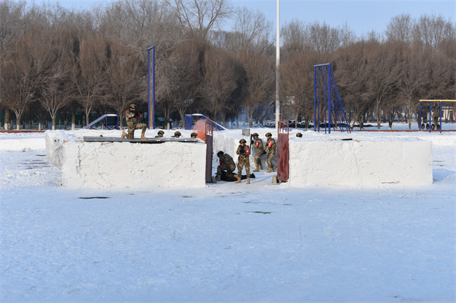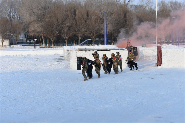 巡控大队训练场上,特战分队的队员们正在进行“红蓝对抗”实战演练,精湛的技战术水平,队员不惧严寒、士气高昂的训练状态,触动了每一名参加活动的消防救援人员,大家纷纷表示要学习兄弟单位这种昂扬的精神状态和顽强的战斗意识。