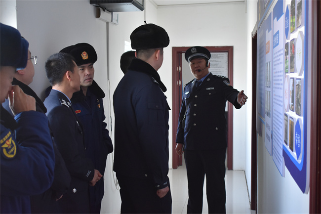 到达巡控大队营区后,巡控大队李书兵大队长对森林消防大队一行的到来表示热烈欢迎,带领见学人员参观了办公室、荣誉室、文化长廊、图书阅览室等场所,讲解了巡控大队近年来正规化建设成果,交流探讨了心理活动室建设、智能化管理平台应用及数字化管理模式等方面内容。