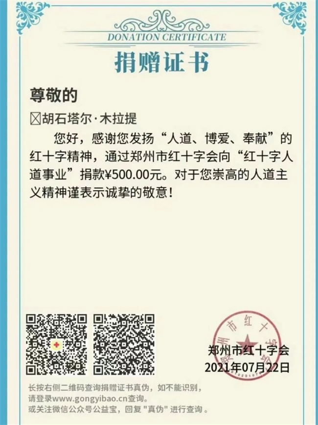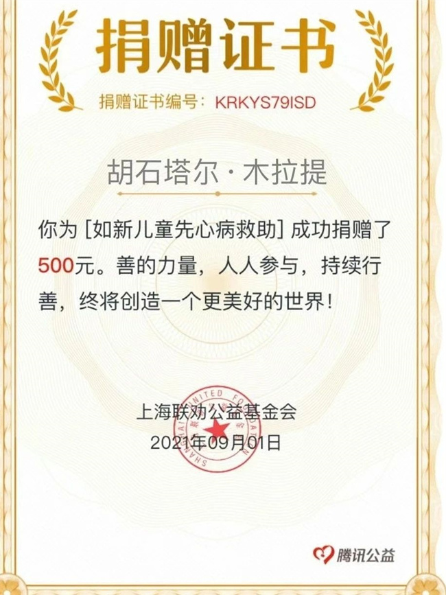 2019年12月怀揣梦想加入国家综合性消防救援队伍成为了一名光荣的消防员,完成本职工作的同时,公益之路从未停歇。2019年开始签订了联合国基金会困难儿童月捐协议,截止目前累计捐款5000元。2020-2022年向新中华儿童心脏病基金会捐赠累计2500元。2021年七月郑州大洪水,他毫不犹豫向郑州市红十字会捐款500元,五年来,先后捐款。捐物累计金额达21000余元。