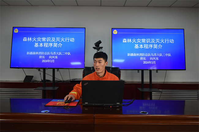 “同志们,森林火灾的发生与火险天气、气候、温度、湿度、降水、地形、风等有着密切的关系。”为进一步提高参训学员基础理论知识,教员采取集中授课的方式,综合运用现场讲授、PPT演示文稿、自由讨论等形式,重点对林火原理、扑火常识、地形、气象条件及植被类型对林火行为的影响、防灭火专业知识、装备技战术性能和操作应知应会理论等内容进行了系统全面的培训教学。同时,教员针对当前应急分队队伍、塔城地区地形特征等实际,讲解了扑火组织指挥模式、安全风险评估、火场紧急避险、火场紧急险情处理等方面进行讲解,使参训学员进一步掌握了森林防火的基础理论,提升了森林灭火专业素质和指挥扑救火灾能力,为全力以赴做好驻地森林草原防灭火工作奠定了坚实基础。