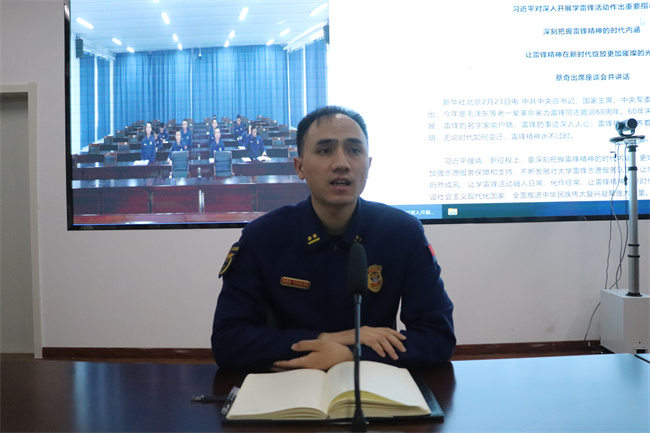 深入学习雷锋精神 领会内涵意义。大队组织观看《习近平总书记对深入开展学雷锋活动作出的重要指示精神》《雷锋精神永不过时》《把雷锋精神代代传承下去》等文章内容。重温雷锋同志生平事迹,教育引导消防救援人员深刻认识雷锋精神实质内涵,牢固树立为人民服务的宗旨意识。