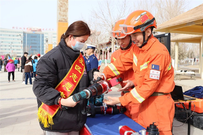 “这个是电动剪切钳,在抢险救援作业用于剪切和扩张,自备电源,便携操作……”大队的地震救援装备展示区吸引了大量居民,指战员通过各类应急救援装备的实物展示,向群众科普了装备的使用场景以及操作方法。