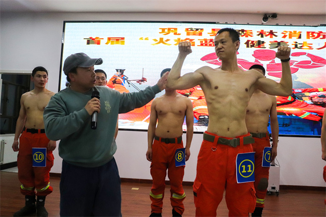 大队对照总队2024年工作要点,深入开展血性战斗作风教育,积极转化CBBA专业健身(体能)教练员培训成果,邀请地方专业健身教练指导点评,举办首届“火焰蓝·健美达人”竞赛活动。此次健美大赛主要以展示前展双肱二头肌、前展双背阔肌、侧展胸部、后展双背阔肌、后展双肱二头肌、前展腹部等6个健美动作为主。参赛指战员将消防救援职业特点与健美健身有机融合,精心设计造型,创新集体表演形式,有力展现出健美身姿,彰显出血性风采,呈现了一场力量与健美的视觉盛宴。比赛现场气氛热烈、高潮迭起,场下观众不断响起助威呐喊声,将现场氛围一次次推向“燃点”,掀起了一个又一个高潮。经过激烈角逐,徐兵山副大队长、三中队二级消防士石爱军和三中队三级消防士李鑫鹏分别获得第一、二、三名。赛后,尤红超大队长对此次竞赛进行了总结讲评,地方专业健身教练对健美动作规范给出宝贵的指导建议。