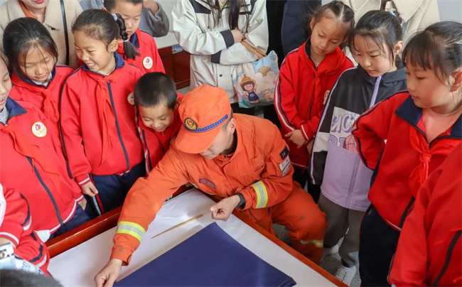 到队后,消防员首先带领师生和家长进行消防安全教育辅导,而后在指战员的带领下师生和家长参观了中队正规化建设,消防员向孩子们展示了叠被子和整理内务技巧,小朋友看见森林消防员们整齐划一的被子、衣柜,让孩子们惊叹不已,纷纷表示要向森林消防员叔叔学习,学会整理内务,养成良好习惯。