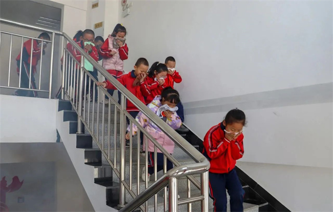 为“零距离”感受火灾现场环境,森林消防员组织师生和家长开展了一场应急逃生演练活动,指战员模拟了火灾现场的烟雾,小朋友跟家长在指战员和老师的带领下,用湿毛巾捂住口鼻蹲下身子,弯腰快速、有序地撤离到安全区域。增强了家长和小朋友们的消防安全意识和突发事件处置能力。