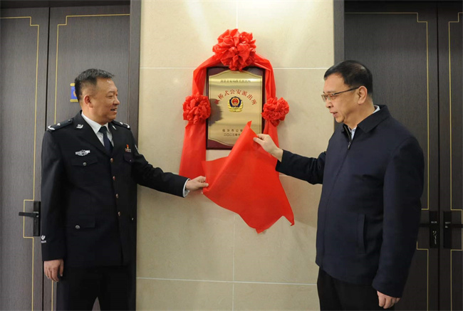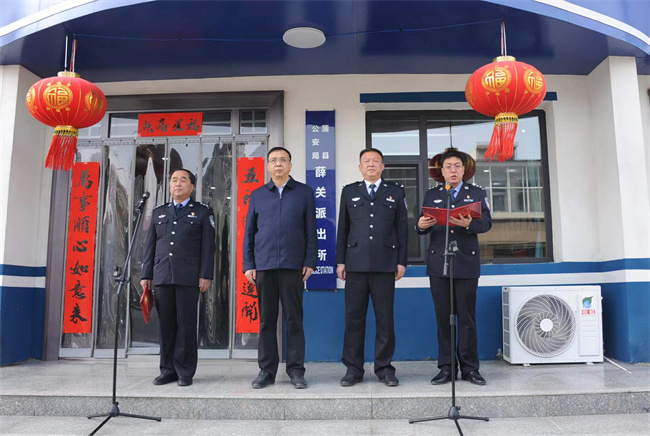 3月18日上午,薛关派出所举行“枫桥式公安派出所”揭牌仪式,蒲县县委常委、政法委书记席江红,政府副县长、公安局党委书记、局长席俊峰共同揭牌,局领导班子成员、相关警种负责同志及部分民辅警代表参加仪式。仪式由局党委委员、副局长孙卫平主持。