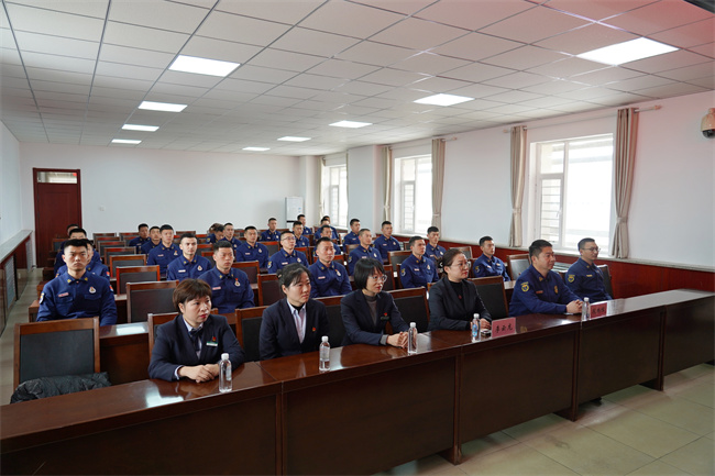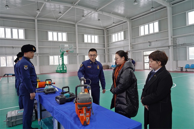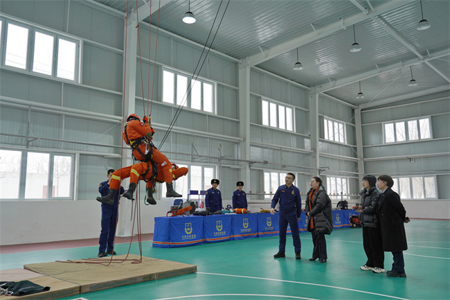 进入营区,全体员工在消防救援员的引领下,现场目睹消防救援人员娴熟的绳索操作技能,近距离观赏展示的“高精尖”救援装备。面对这一场景,员工们表现出了对消防救援人员的尊敬与崇敬之情,深切感受到他们的勤劳与奉献精神。随后,他们有幸参观了乌苏大队的荣誉室和宿舍,更深入地了解了消防救援队伍的工作和生活状况,加深了对消防救援工作的认知与理解。