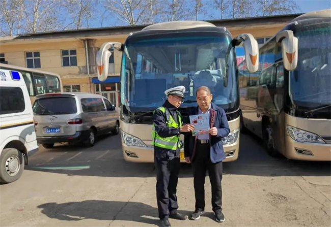 本网讯:(王新晋)为加强客运企业及车辆源头管理,有效预防和减少道路交通事故的发生,确保辖区道路交通安全、有序、 畅通。3月19日,尧都区公安局交警大队空港中队民警走进辖区顺义嘉旅游客运有限公司开展交通安全宣传活动。