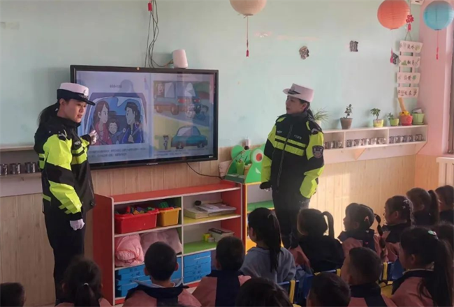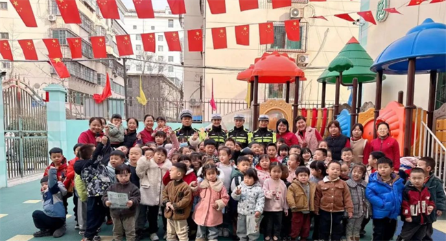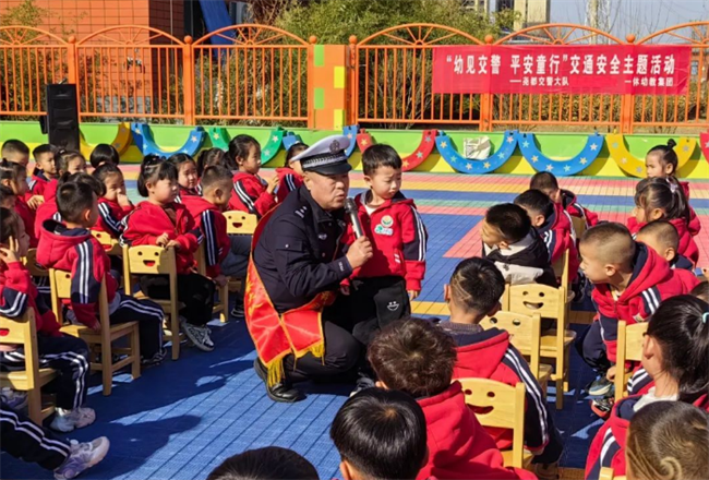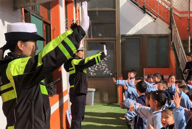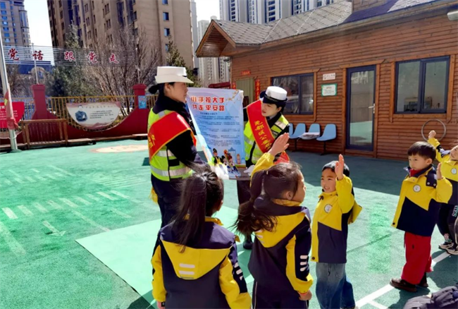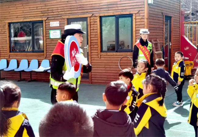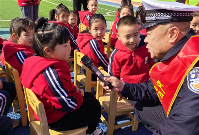 活动中,民警用通俗易懂的语言,为小朋友们讲解如何安全过马路、如何安全乘车等交通安全常识,并利用交通指示牌与小朋友们互动娱乐,教会孩子们认识常见的各类交通标志。活动还设立“小交警”手势操、“交通安全情景模拟演练”等环节,进一步提升安全教育内容,为小朋友们的平安出行提供了有力保障。