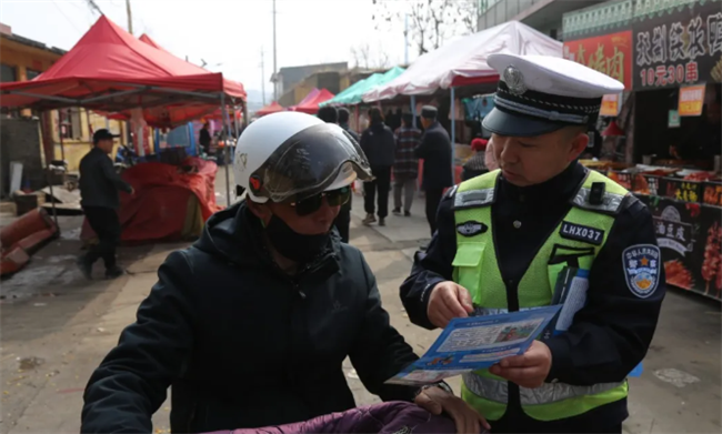在庙会现场,民警以“一盔一带”、“一老一小”等作为重点宣传内容,用通俗易懂的方言,通过发放浅显易懂、图文并茂及针对性强的交通安全资料,现场向参加庙会的群众、摆摊商贩等宣讲交通法律和交通安全知识。重点针对农用车辆非法载人、无牌车辆、无证驾驶、骑乘摩托车不戴安全头盔等交通违法行为时有发生的实际,进行了有针对性的宣讲。同时,提醒参加庙会的群众驾车返家时,严禁超速、超员、疲劳驾驶、三轮和低速载货汽车载人、酒后驾车等交通违法行为,确保安全,使大家形成自觉遵守交通安全法律法规的良好习惯。告诫广大人民群众要做到文明礼让,养成文明参与交通活动的良好习惯。在场的群众纷纷表示,一定会从现在做起,从自身做起,做一个文明出行、安全出行的交通参与者。