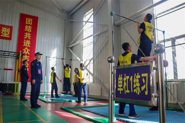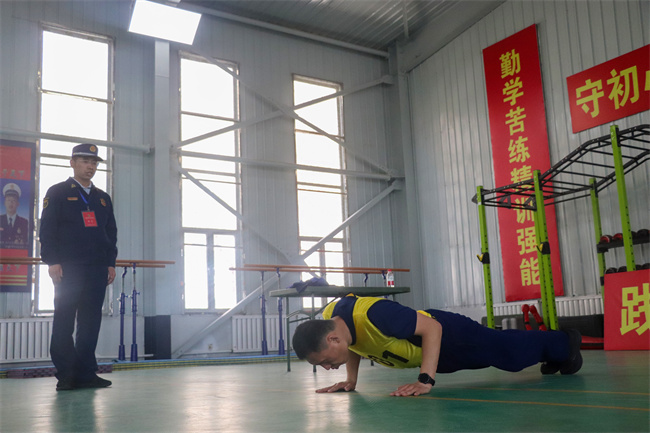 此次考核以《森林消防队伍教育训练大纲(试行)》为依据,坚持“高标准、严要求、全员额、全要素”的原则,采取普考与现地抽考相结合的方式,利用两天一夜时间,分别对5000米跑、200米游泳、单杠引体向上、双杠摆动臂屈伸、400米携装突击、战备拉动、狭小空间破拆、木质支撑、水泵架设与撤收、灭火弹投掷、识图用图、业务理论等体技能科目进行全面验收考核,对各类软件进行详细检查。
