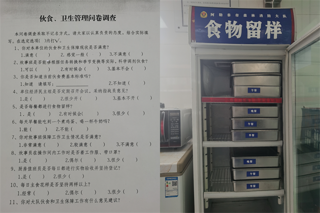本网讯:(陈飞同)“餐桌连着训练场,保障关乎战斗力”。队伍高质量的伙食保障不仅关乎消防员的健康,更是消防员拼搏训练场最直接动力。近日,阿勒泰地区森林消防支队阿勒泰大队从“舌尖上的需求”着手,不断提升伙食管理质量。