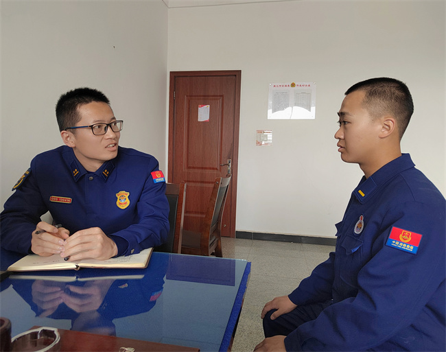 “我叫王赫霖,来自新疆,爱好打篮球......”在班级内,新消防员王赫霖正在进行自我介绍。为使新消防员能够尽快适应下队生活,大队通过组织开展茶话会的形式,以“自我介绍、谈心交心”的方式,拉近了队员间的距离,迈出了从陌生到熟悉的第一步。