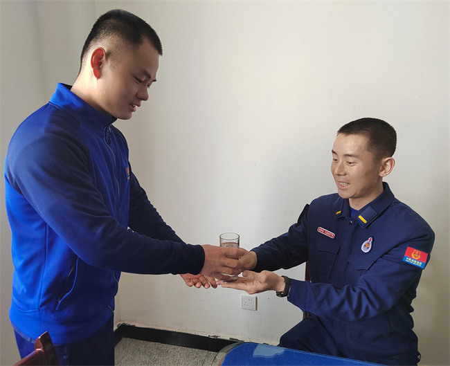 “来,喝热水。”老消防员将热水递到新消防员手中,给大家打水洗漱,又帮助新消防员整理好内务,从走出列车车厢到迈进营门,再到进入班里,“老兵”同志们的热情就让新消防员感到无比温暖。