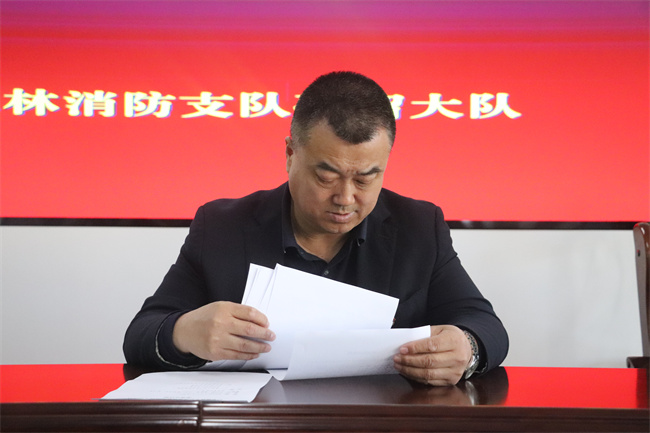 大队高度重视地方半专业扑火队培训工作,科学统筹、严密组织召开此次开训动员部署会。大会在庄严的国歌声中拉开序幕,会议由魏富满指导员主持,并宣读了培训工作方案,尤红超大队长从“严格按纲施训,压实训练责任;聚焦灭火主责,紧扭训练重点;着眼队伍发展,强化训练保障。”等三方面对此次培训工作进行动员部署。