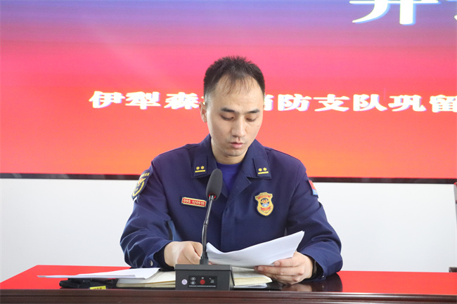本网讯:(魏富满 巴合德尔)为贯彻落实上级关于森林草原防灭火工作系列指示精神,有效防范应对重大森林草原火灾风险,满足驻地森林草原防灭火任务需要,全面提升地方半专业扑火队作战能力水平,4月2日,巩留县森林消防大队组织召开伊犁森林草原防灭火业务培训开训动员部署会,天山西部国有林管理局巩留分局李发兵副局长、森保科何荣华科长、大队尤红超大队长和全体参训队员及教员参加会议。