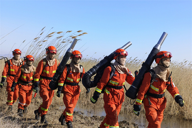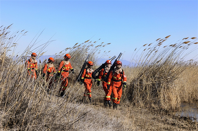 当前气温回暖,天气干燥,湿地内可燃物载量较多,如果在野外吸烟、野炊、祭祀,稍有疏忽就可能导致一场森林大火,后果十分严重。聚焦重心勤巡护,全时全装保安全,执勤队伍紧贴“预防为主,积极消灭,生命至上,安全第一”防火方针,派出巡护小组背负着灭火装备巡护,详细了解湿地的植被分布,地貌特征以及可燃物密集区域,排查风险、消除隐患、防控火灾,全方位、多角度、高标准地做好执勤工作,将“被动打”变成“主动防”,及时应对可能发生的突发事件,全面做好灭火救援各项准备工作,将火灾隐患抹除归零。
