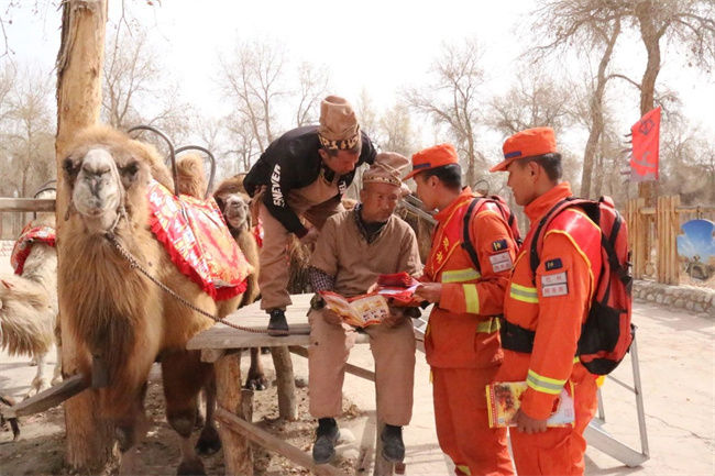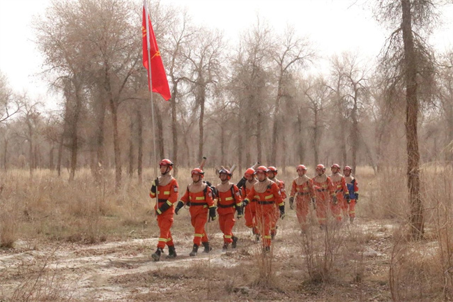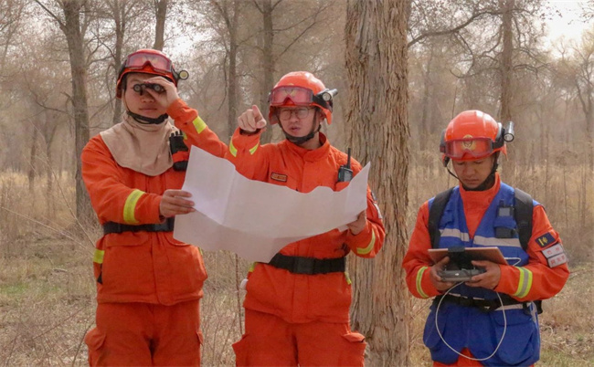 “从实地踏查情况看,阿瓦提县胡杨林内可燃物载量较多,地表可燃物覆盖在林下与绿色植被交错叠加,以落叶、枯枝为主,可燃物较为干燥,易燃。”在阿瓦提县胡杨林内,指导员张誉继带领着踏查小组,现地查看地形地貌,记录林区植被类型、林下可燃物载量,标记附近可用水源和交通道路,对重点火险区域进行详细标注,建立全面详实的森林防火数据库,确保战备工作有据可依、有案可施。