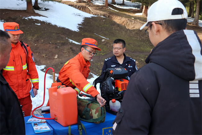 大队结合春防工作任务实际,以“清明”防火专项行动为契机,科学统筹,严密组织开展防火宣传。大队采取“线上+线下”的方式,利用网络平台直播,通过在景区人员密集、客流量较多的区域摆放展板,发放宣传手册、宣传单、防火纪念品等方式,向来往群众宣传森林防火相关知识,邀请群众现场体验各类灭火设备的正确使用方法,让群众更加贴切感受、支持参与森林防火工作。