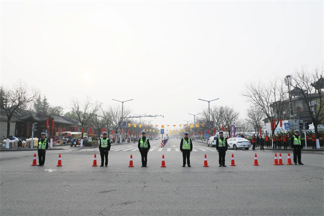 针对活动期间交通流量大、人员出行多等特点,洪洞公安树牢底线思维,最大限度地将警力和装备投入到路面,对活动核心区域及周边道路开展管控和引导分流,合理控制车流人流,实时播报道路交通状况,引导群众根据路况选择合适的交通方式和出行路线,全力保障活动现场及周边道路畅通有序。