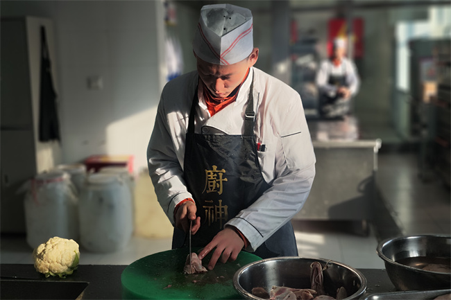 柴米酱醋盐,酸甜苦辣咸。当其他人还沉睡在梦乡之中,炊事员却已早早的在炊事班准备早餐,他们早已习惯了起早贪黑,把锅碗瓢盆视为陪伴,每天围着灶台转,不论日常操课,还是假日休息,他们始终任劳任怨,肩负着集体的伙食保障重任。队友们经常问他:“平时你就很忙,一到节假日你就更忙,你难道没有抱怨过吗?忙起来的时候没有时间和家里人打电话,不想家人吗?”炊事员罗紫红却说“作为炊事员,大家对伙食的满意就是我们奋斗的目标。”