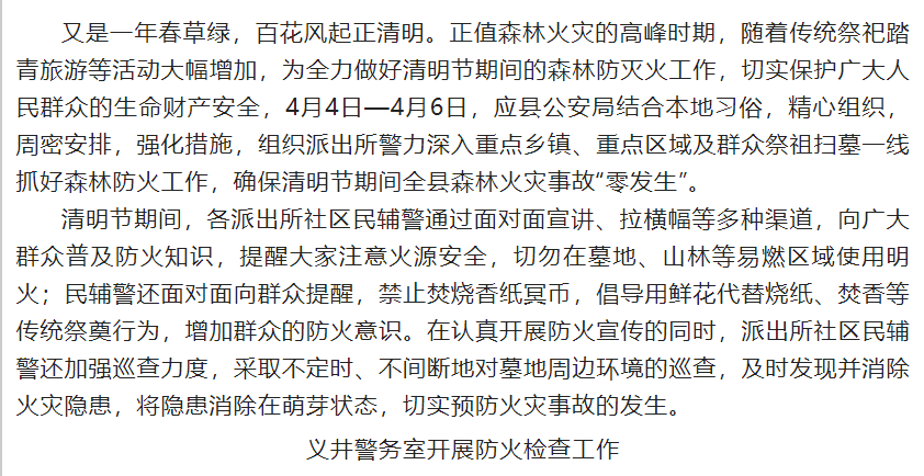 “警”盯森林防火 共度平安清明