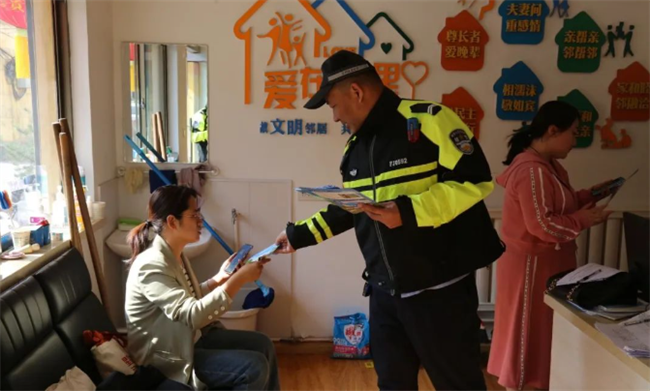 活动中,民警向社区群众发放交通安全宣传手册,宣传和普及道路交通法律法规知识、无牌无证、酒后驾驶、骑摩托车不戴安全头盔、以及行人如何行走更安全、骑电动自行车应注意的事项等,讲解身边发生的典型事故案例,以“身边的事故警醒身边人”的方式,提醒广大群众要自觉抵制交通陋习,养成文明出行习惯,牢记“一盔一带,安全常在”,切实做到不闯红灯、不横穿马路,远离大型车辆“盲区”,牢固树立安全第一的思想,严格遵守交通法规,杜绝不良的驾驶习惯,真正做到知危险会避险,安全文明出行。