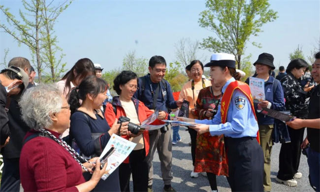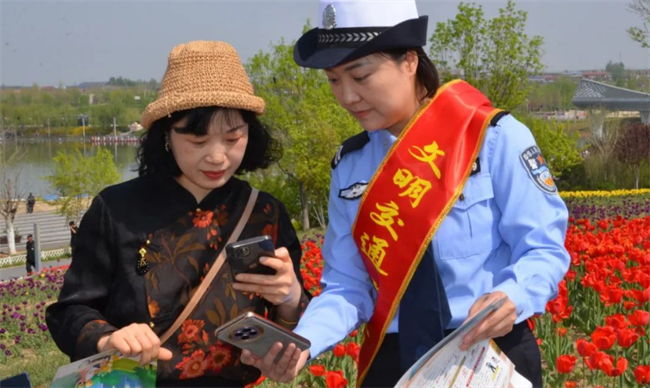 “十里春风,不如出行平安,大家踏青赏花之时,一定要牢记交通安全。”“骑电动车一定要佩戴安全头盔。”……活动中,宣传民警一边向赏花游客发放交通安全宣传资料,一边向游客们讲解驾乘电动自行车要佩戴安全头盔,开车要系好安全带,行经路口要注意观察、减速慢行、专心驾驶。同时还针对老年人、儿童等特殊群体,进行了重点宣传,帮助他们更好地理解和遵守交通安全法律法规。让游客在观赏郁金香盛开美景的同时,也感受到了尧都交警的暖心提示。